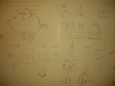 in der letzten Woche habe ich von erster Idee einen Rucksack , wie unten gezeigt, entwickelt, zwar nur eine Skizze. die Funktionsweise ist, die Teenager können damit ganz einfach Brotbox oder Trinktasche vom Rucksack ausziehen und einstecken.